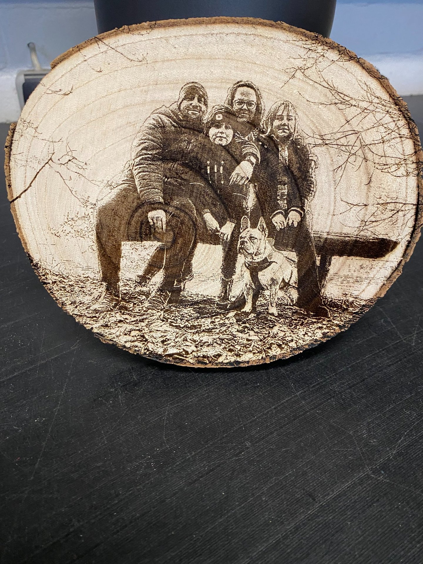 Lasse deinen Entwurf auf unterschiedlichste Materialien lasern - ob Holz, Leder oder Kunststoff, vieles ist möglich!